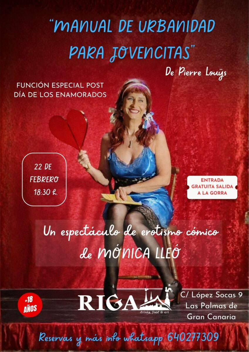 Un espectáculo de erotismo cómico lleno de humor, ironía y provocación. Mónica Lleó lleva 27 años dando vida a esta obra, invitando al público a reír, sorprenderse y cuestionar con ingenio las normas sociales y la educación sentimental femenina.